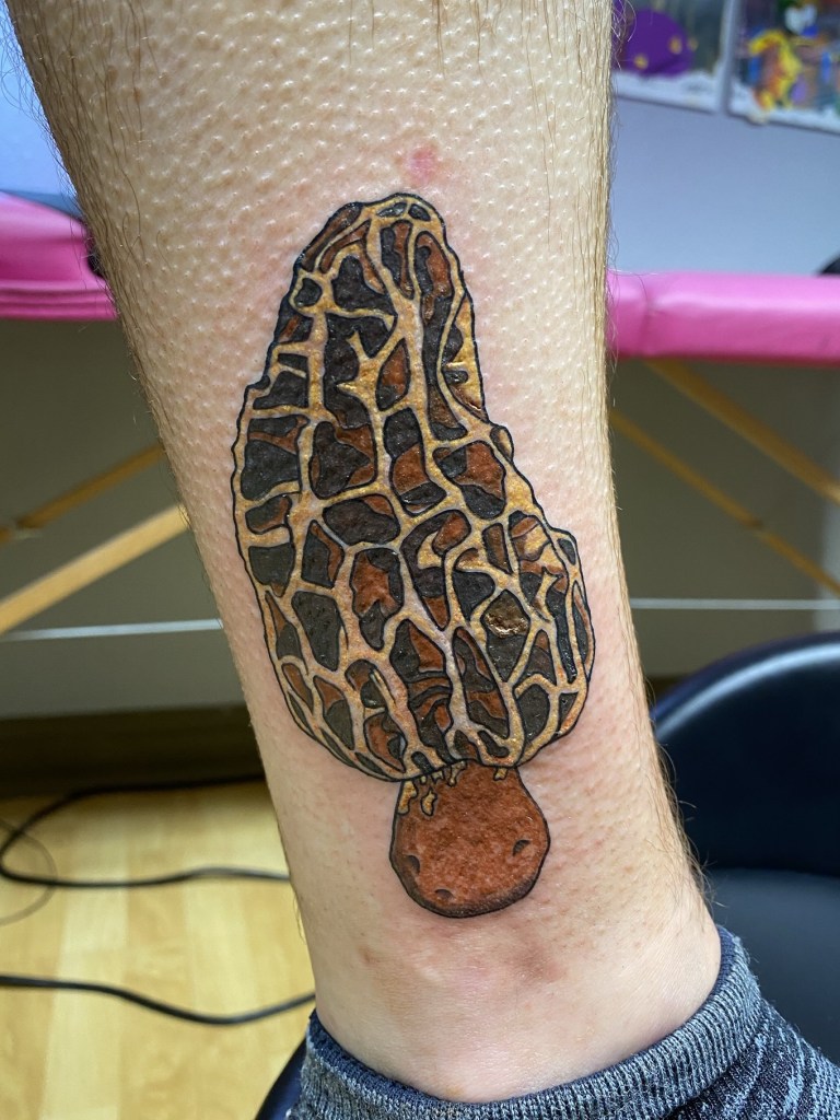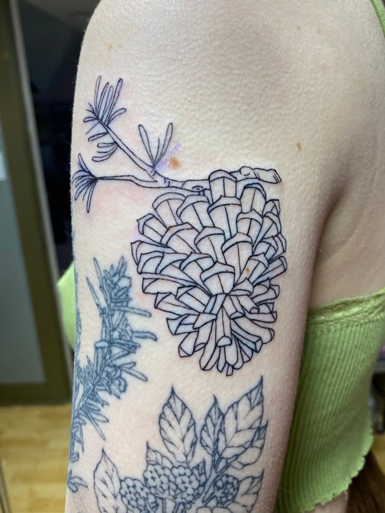 When Anna isn’t tattooing, they enjoy reading, crochet, mushroom hunting, spending time at the river, and watching shows with friends.