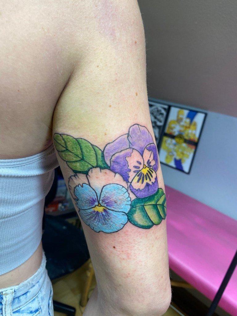 When Kayla isn’t tattooing, she is either on a silly adventure with her wife, Nikki, playing a video game, reading a new book, or binging an anime from her watchlist.
