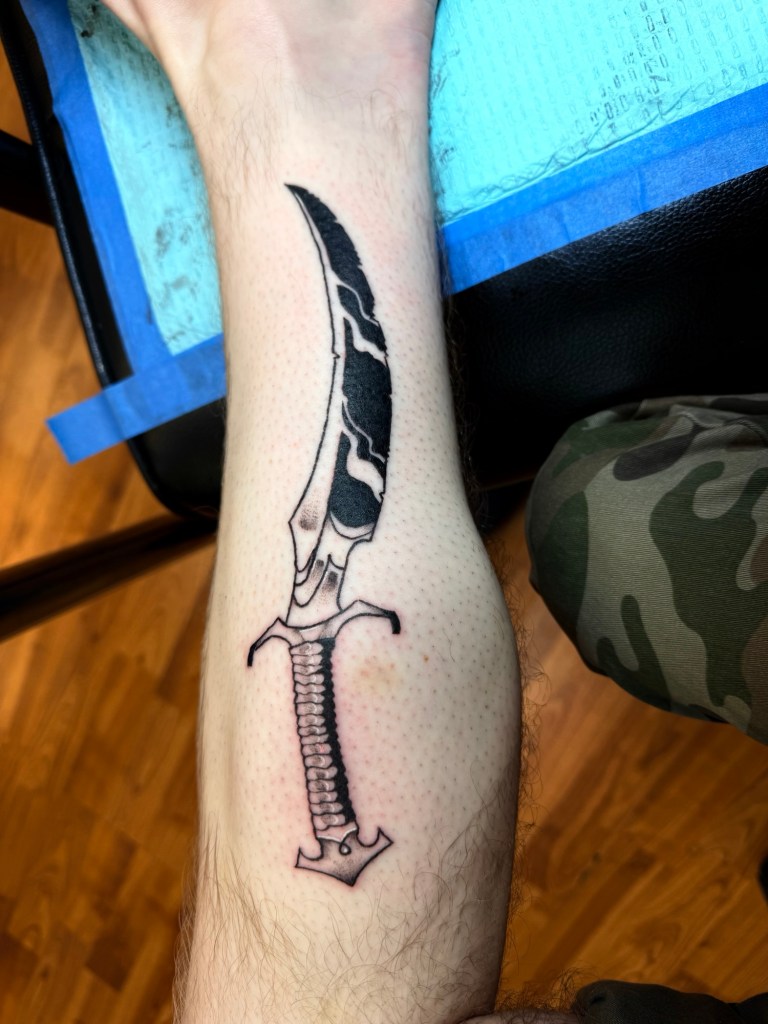 Ken (@dogbyte.tattoos) is a twenty-five year old tattoo artist who specializes in illustrative, ornamental and fineline tattoos. He particularly enjoys tattooing animals/mythical creatures, weapons, artifacts, and anything western. Ken comes from a background of character illustration and oil painting, and he enjoys projects that challenge his creativity. As a trans man, Ken is also interested in projects involving gender affirming tattoos.